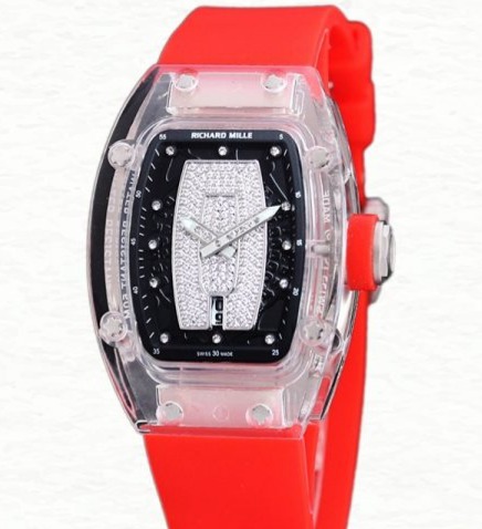 Richard Mille RM 07-02 Ladies Automatic Acrylic Watch Red With Diamonds Dial